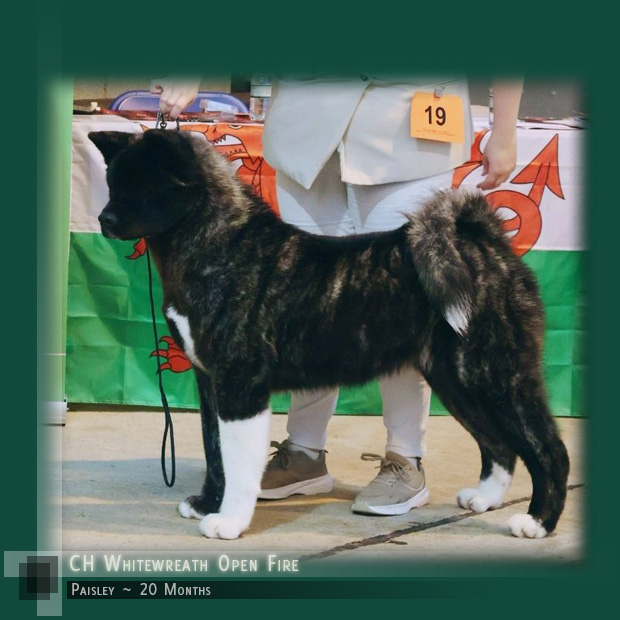Paisley made her ring debut in late July 2024, at just her 3rd show and from Minor Puppy she is awarded her first Reserve CC!! Taking back to back Reserve CC's in Wales at just shy of 9 Months with Res Best Puppy In Show at the Akita Club of Wales Championship Show under well respected breeder and judge Mr David Killilea. She went on a roll earning herself 5 Reserve CC's which she followed up with 2 CC gaining her the title of Champion which was awarded under world respected judge Mrs Jenny Killilea at just 20 Months! Her future looks bright. |